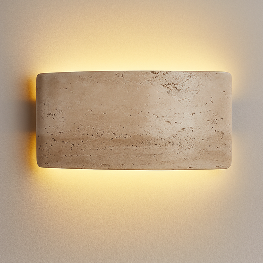 Velano – Lampada da parete in pietra di travertino e vetro – Per interno ed esterno – Ø25 cm