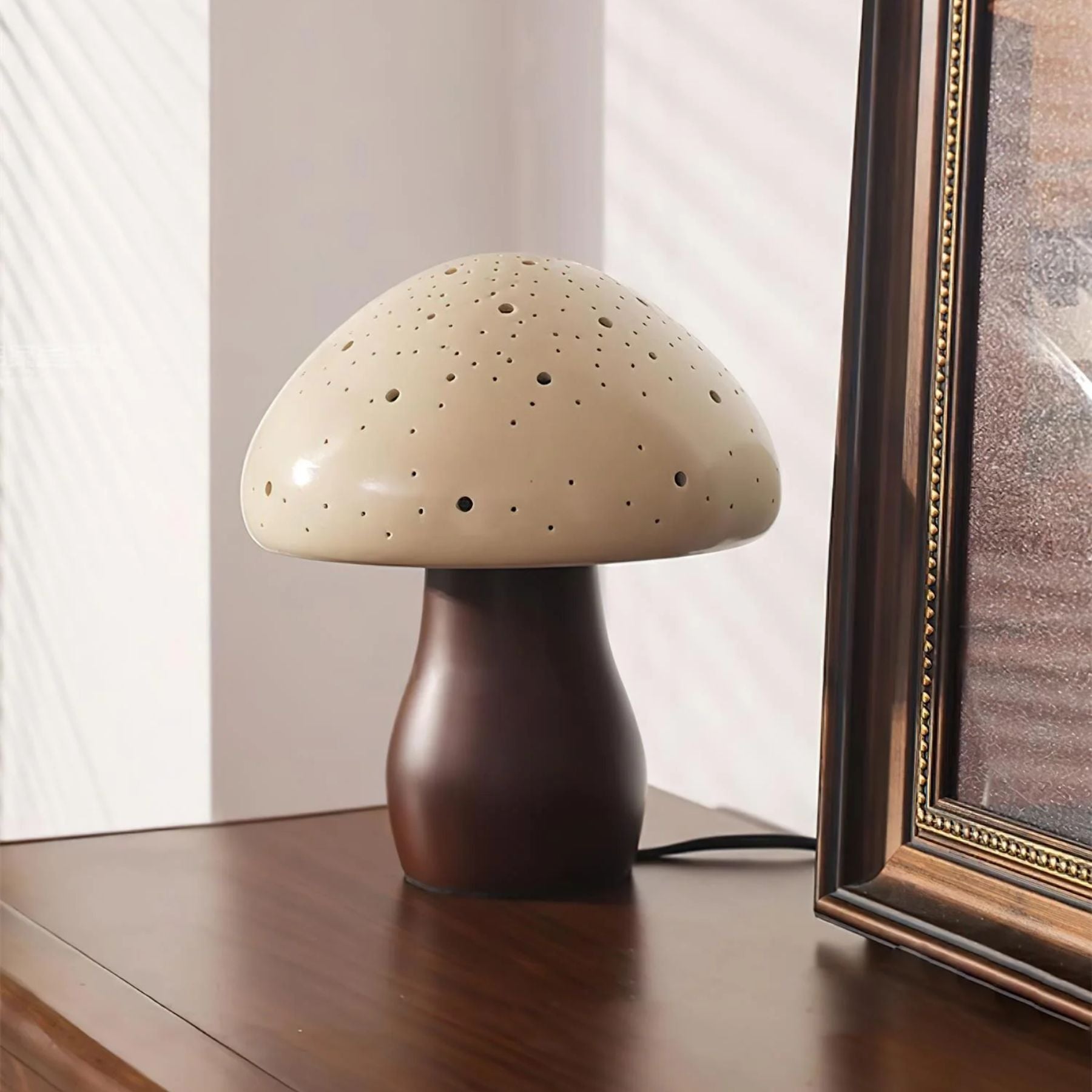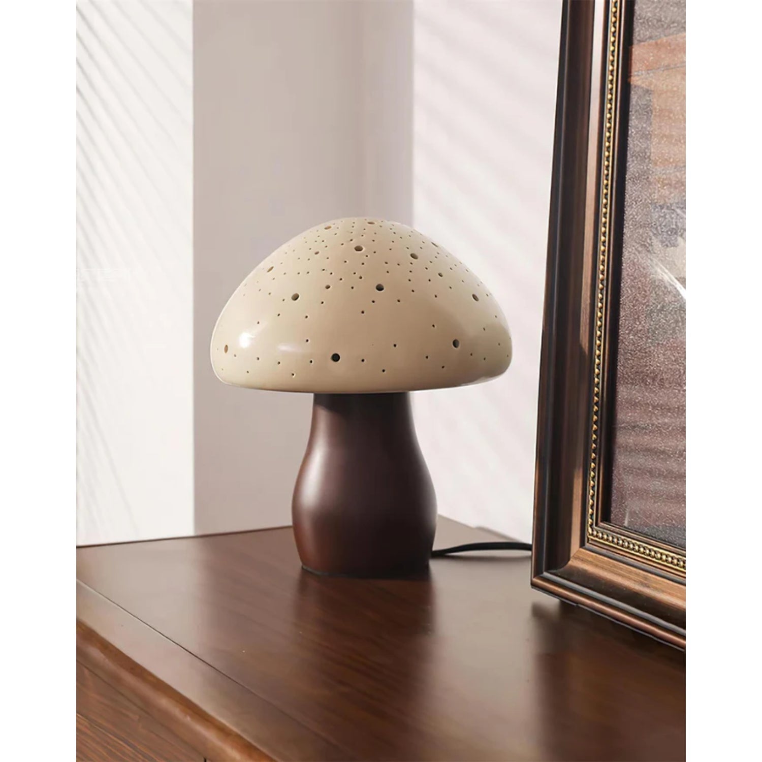 La lampada da tavolo Zénithéa aggiunge un tocco giocoso e naturale a ogni ambiente. Con la sua forma scultorea che ricorda un fungo, questa lampada combina ceramica e legno per un aspetto caldo e raffinato. Le morbide perforazioni nel paralume diffondono la luce creando un motivo suggestivo, simile ai raggi del sole che filtrano attraverso un fogliame. Perfetta come lampada da tavolo per il soggiorno, la camera da letto o l'angolo lettura, è ideale per creare un'atmosfera accogliente e rilassante. La lampada da tavolo Zénithéa è una scelta raffinata per gli amanti del design e dei materiali naturali.