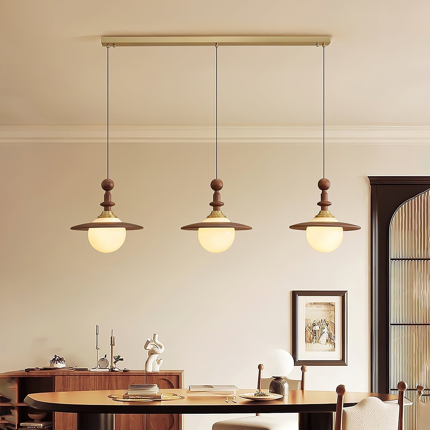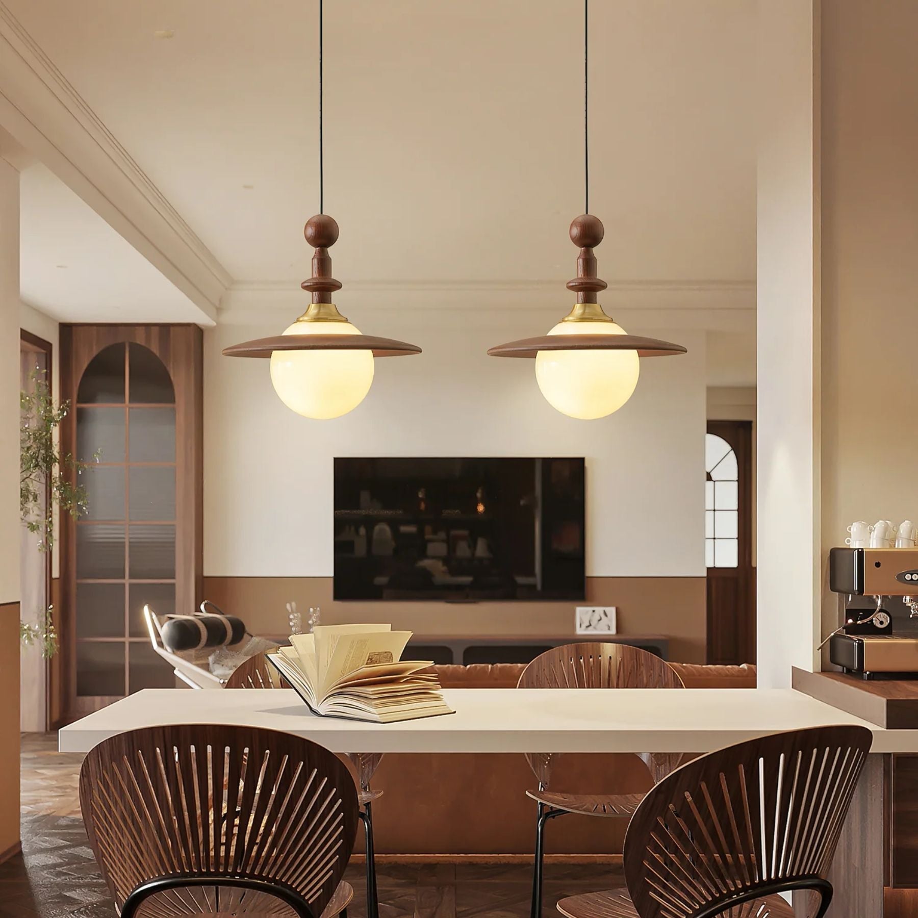 Lampa wisząca Ophira łączy elegancję z naturalnymi materiałami, tworząc ponadczasowy design, który doskonale pasuje do każdego wnętrza. Ta drewniana lampa wisząca z szklanym kloszem i metalowymi detalami emanuje ciepłem i atmosferą, dzięki czemu jest idealna nad stół jadalniany, do salonu lub sypialni. Dzięki użyciu orzecha włoskiego i złotych akcentów powstaje stylowy wygląd, który jest zarówno klasyczny, jak i nowoczesny. Regulowany kabel pozwala dostosować wysokość według potrzeb, co sprawia, że lampa jest nie tylko funkcjonalna, ale także wszechstronna.