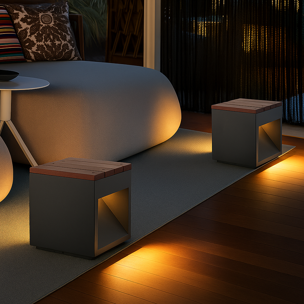 Minimalistyczne linie ze stali nierdzewnej doskonale pasują do każdej przestrzeni na zewnątrz.