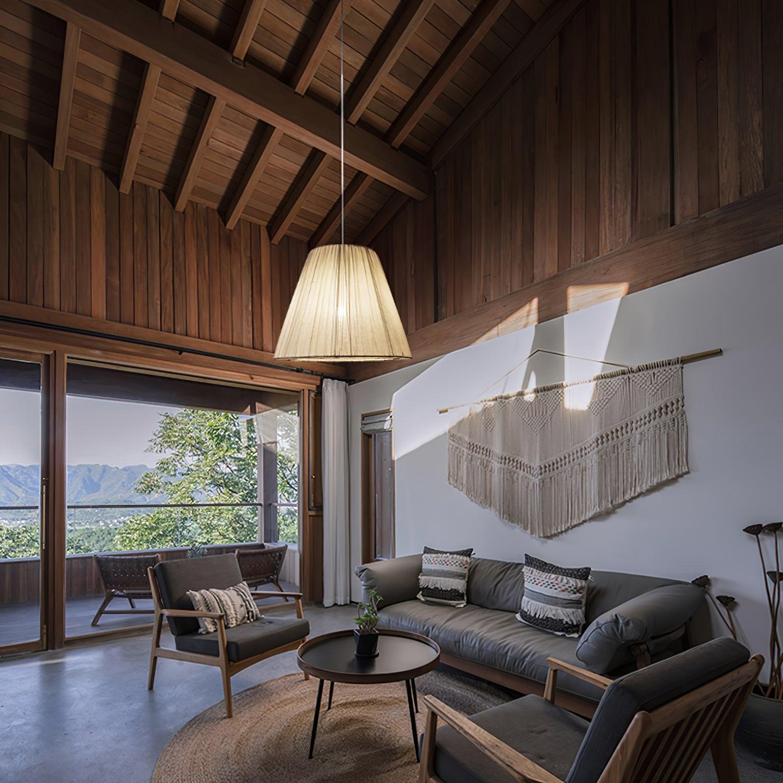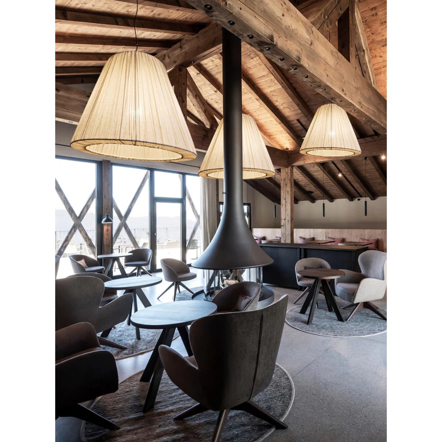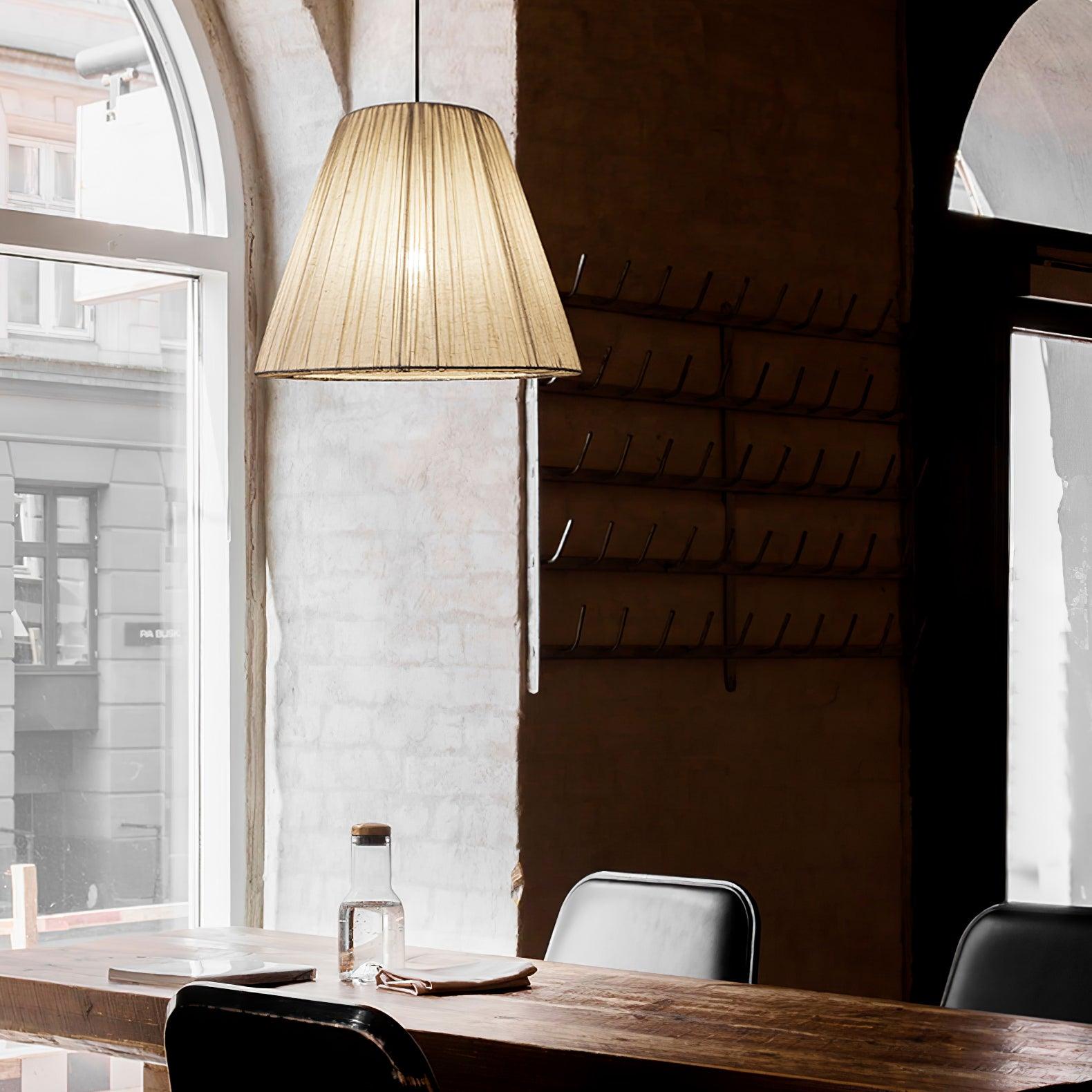 De Ardène Hanglamp brengt warmte en elegantie in elk interieur met zijn stijlvolle combinatie van metaal en textiel. Het robuuste metalen frame zorgt voor een moderne uitstraling, terwijl de taps toelopende stoffen kap in beige een zachte en rustgevende gloed verspreidt. Dankzij de subtiele textuur van de stof ontstaat er een diffuus en sfeervol licht, ideaal om een serene ambiance te creëren. De elegante kegelvorm biedt niet alleen visuele aantrekkingskracht, maar zorgt ook voor een brede verspreiding van het licht. Perfect boven de eettafel, in de woonkamer of een horecazaak waar sfeer en uitstraling centraal staan.